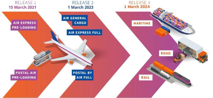 - Release 1: Postal operators and express carriers shipping cargo by air from third countries into or via the EU, Norway or Switzerland