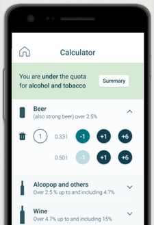 Here you enter everything you are bringing and the app calculates if you are within the quota. You can proceed to pay if you are bringing with you goods over the quota, and declare and pay taxes directly in the app.