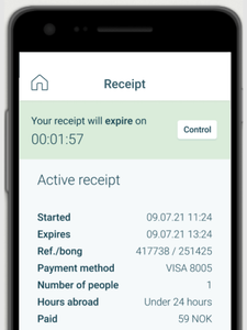 Once you have paid, you may pass through the green channel. You may also use the app before passing unmanned border crossings, whether you arrive Norway by plane, boat, train or car.