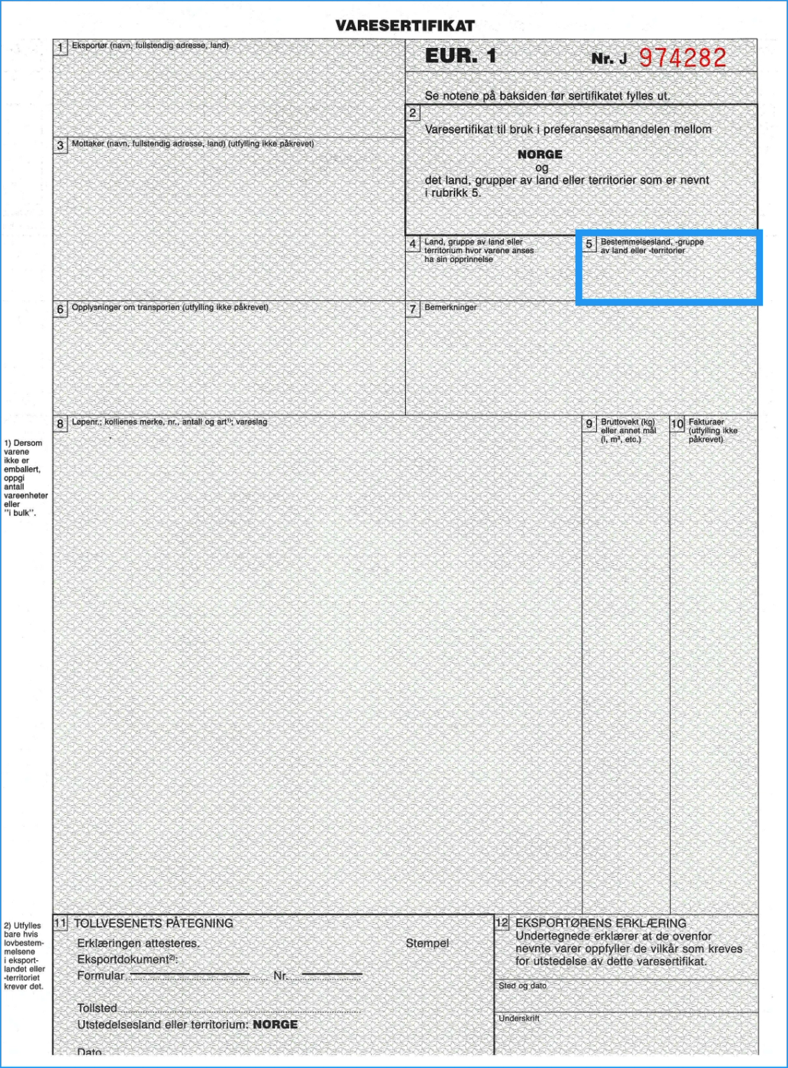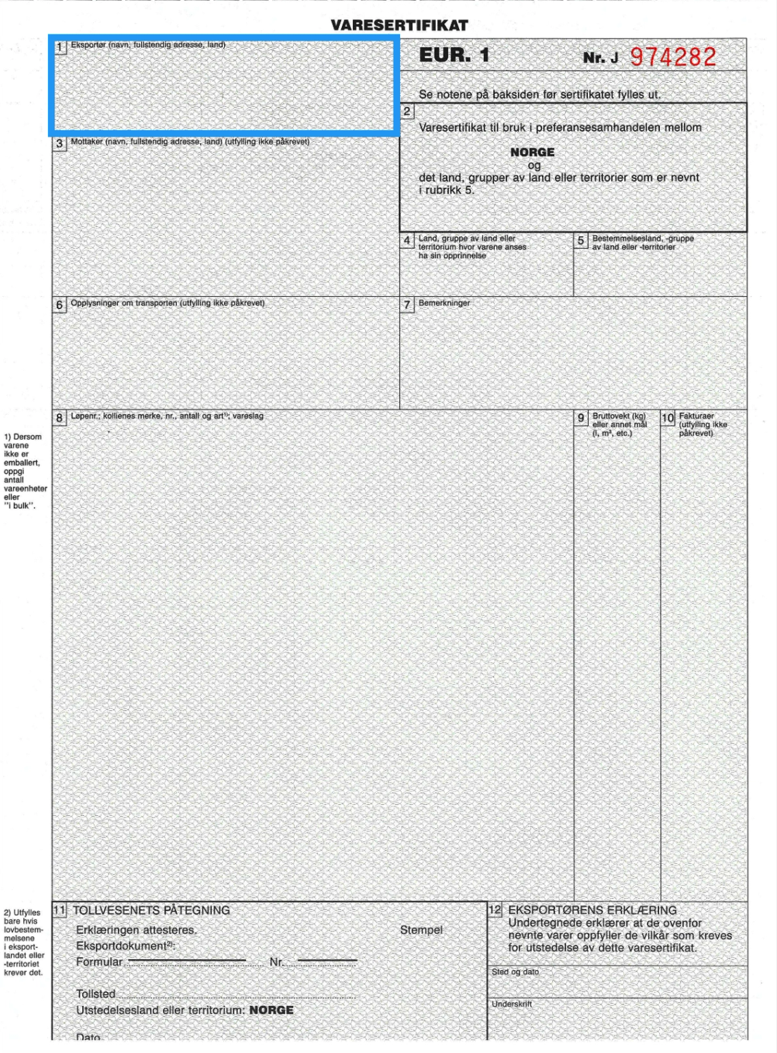 - Denne rubrikken er for tollforvaltningen i eksportlandet.
