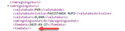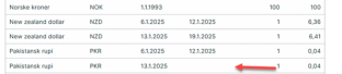 Fra 5.3.2025 vil valutakurser publiseres uten til og med dato (t.o.m).