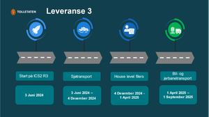 Arbeidet med fase 3 av ICS2 (Import Control System 2), for forhåndsvarsling av varer fra 3. land til EU, Norge og Sveits, har startet. Denne fasen omfatter forsendelser og transport med skip, bil eller jernbane.