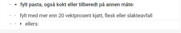 Vår pasta er ikke fylt med er enn 20 vektprosent kjøtt, flesk eller slakteavfall. Vi velger derfor "ellers", og får to valg: "kokt" eller "ellers".