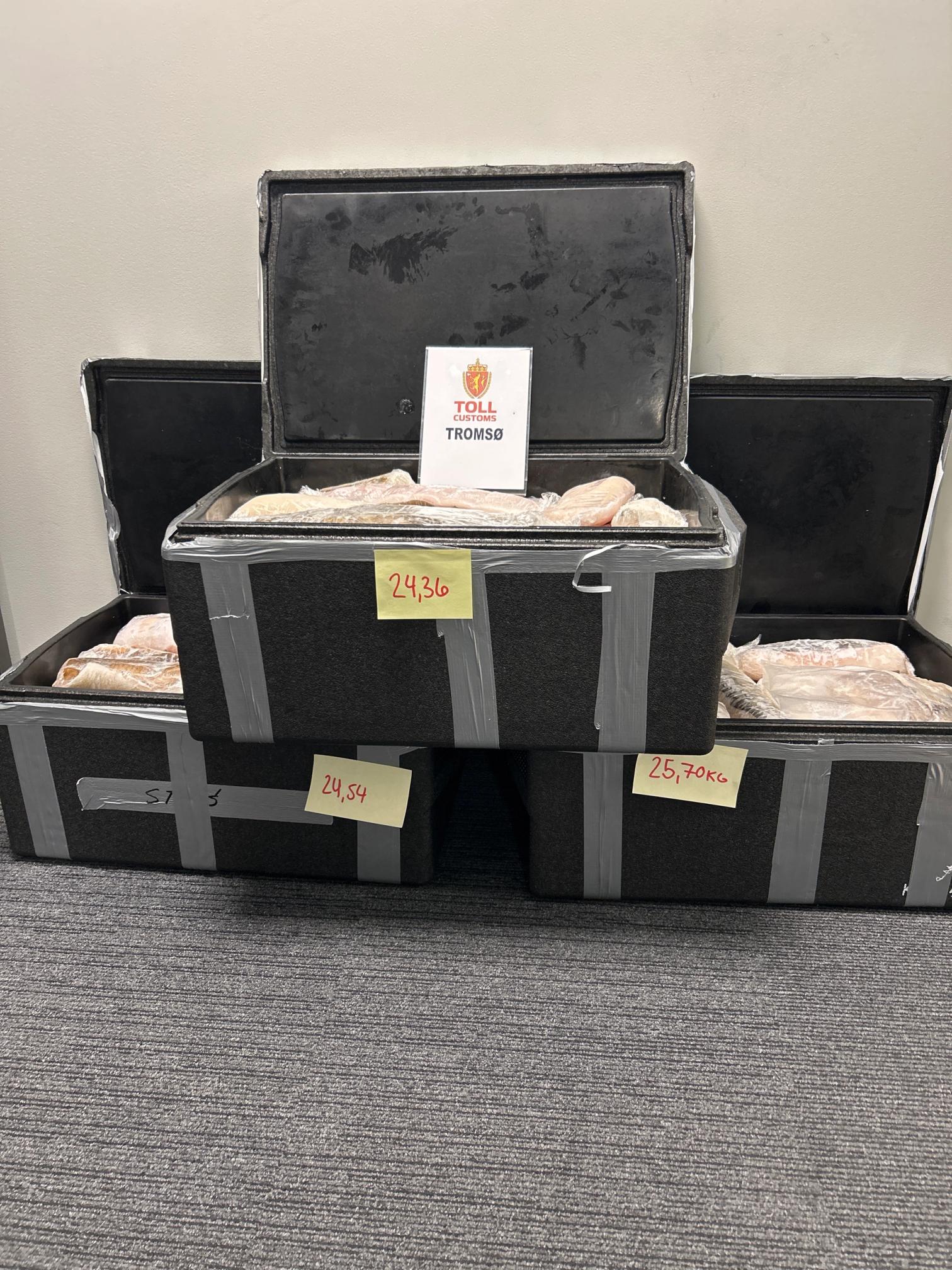 Beslagsåret 2024 var også preget av rekordmengder beslag av fisk forsøkt smuglet ut av landet.Tolletaten har i år beslaglagt hele 13 tonn fisk, noe som er nesten det dobbelte av det som ble beslaglagt i fjor.