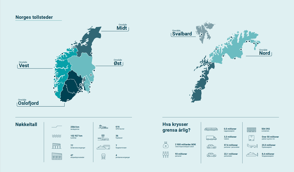 Alle varer som importeres inn eller eksporteres ut av Norge skal registreres i Tolletatens systemer. Dette innebærer blant annet å oppgi opplysninger om varens selger, kjøper, statistisk verdi, varetype og opprinnelsesland. Slik har Tolletaten en unik innsikt i den store strømmen av varer som går inn og ut av Norge.