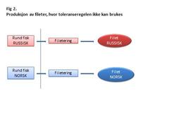 Toleranseregelen er ikkje "brukt opp" for filetane frå figur 1. Dei har norsk opphav, og foredlar du desse vidare, kan du bruke toleranseregelen i den neste produksjonsprosessen.